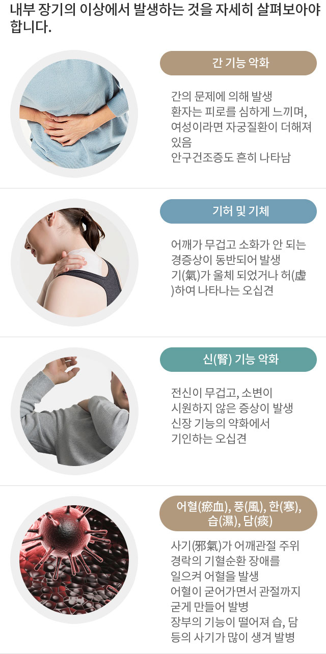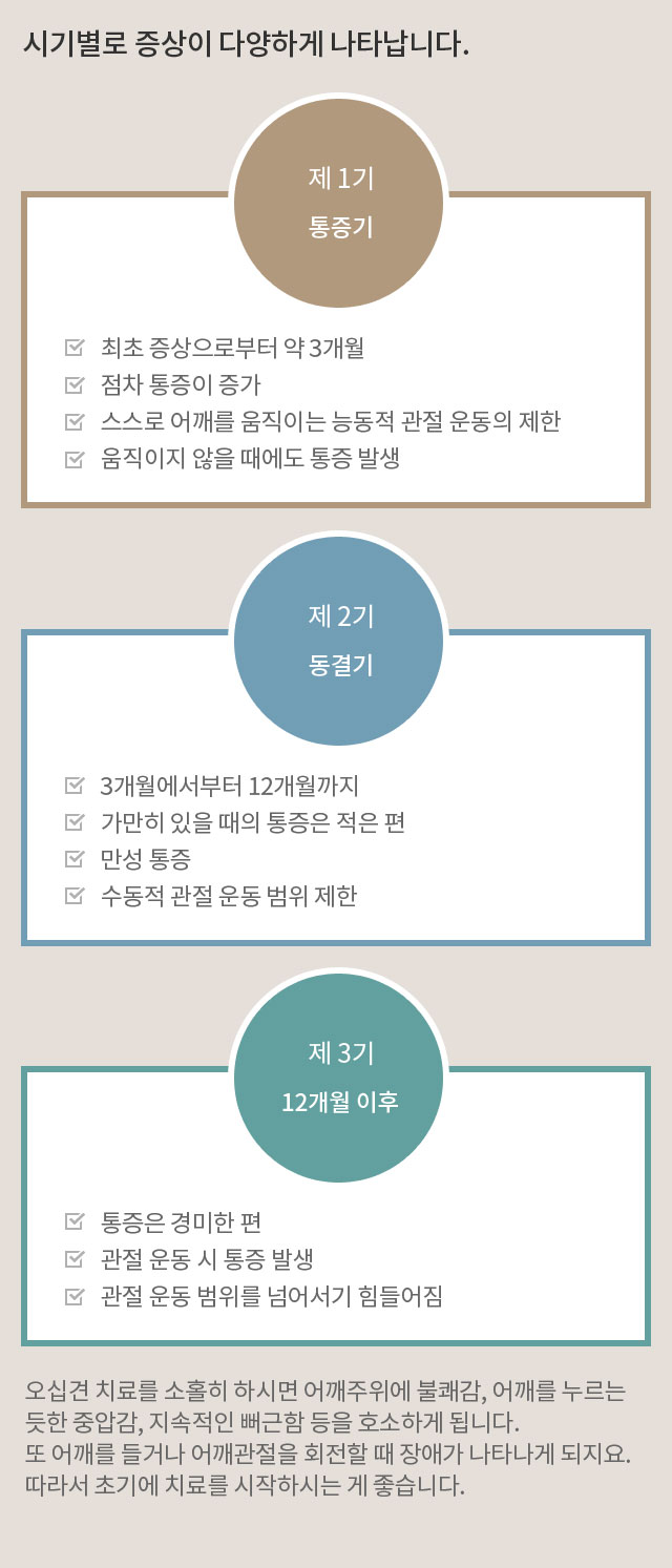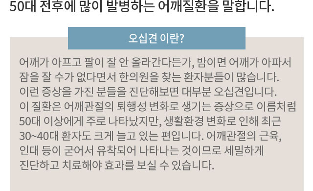 어깨에 지속적인 통증과 팔이올라오지 않는 증상