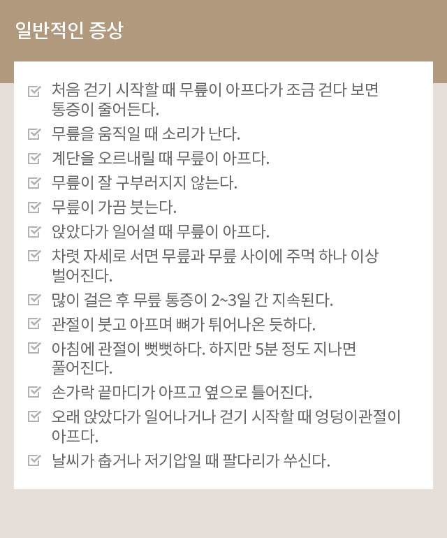 관절이 욱씬욱씬 아프고 심하면움직이기도 힘든 관절염